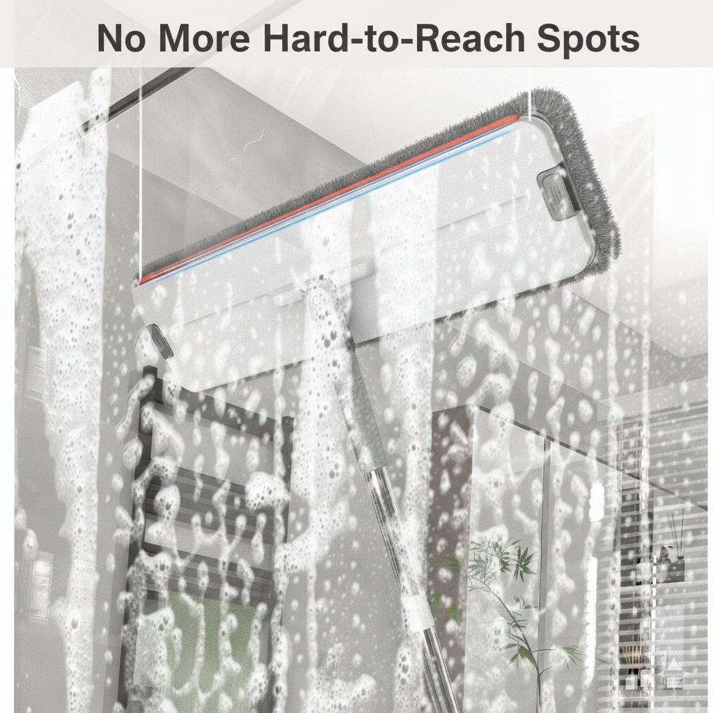 The dual-chamber system separates clean and dirty water, preventing mess and making your cleaning routine smarter. The 360° swivel head slides under furniture and into tight corners with ease, while the included high-absorbency microfiber pads lift dust, spills, and dirt in seconds — no streaking, no residue.
