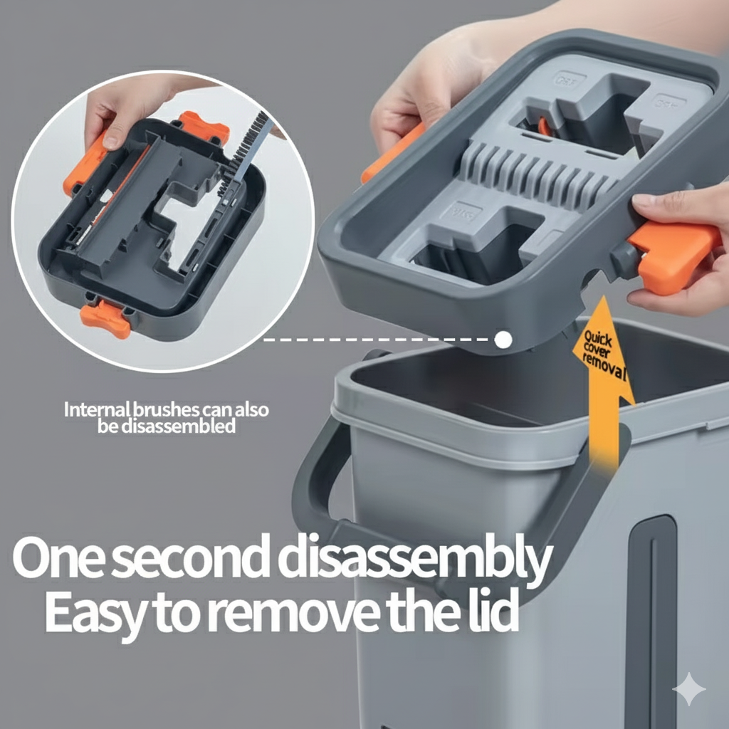 ✔️ Hands-Free Self-Cleaning Bucket