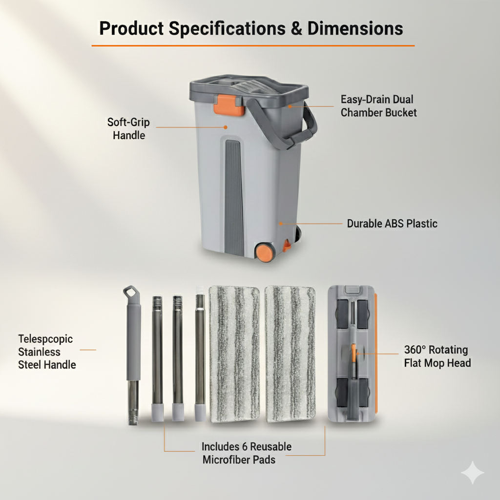 Paired with 6 high-quality microfiber pads, this mop effortlessly handles spills, muddy footprints, hair, dust, and daily grime — perfect for tile, wood, laminate, vinyl, marble, and more!